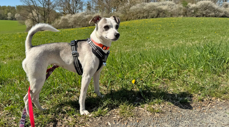 Die kleine Paula ist eine liebe Hündin, sehr anhänglich, zutraulich und neugierig. Paula schnuppert auf der Wiese, schaut in alle