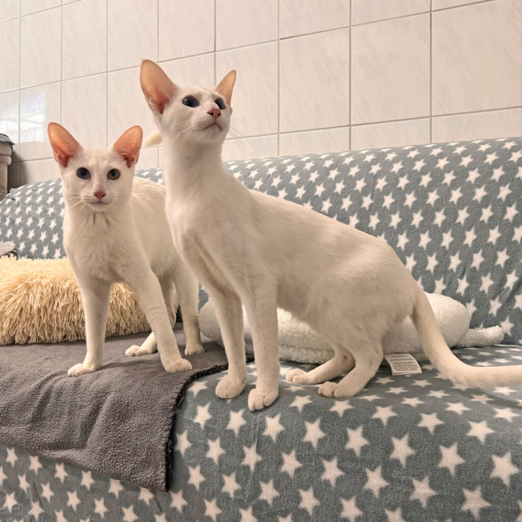 Bei Doby & Aziza handelt es sich vermutlich um Orientalisch Kurzhaar Katzen, möglicherweise OKH-Mix.