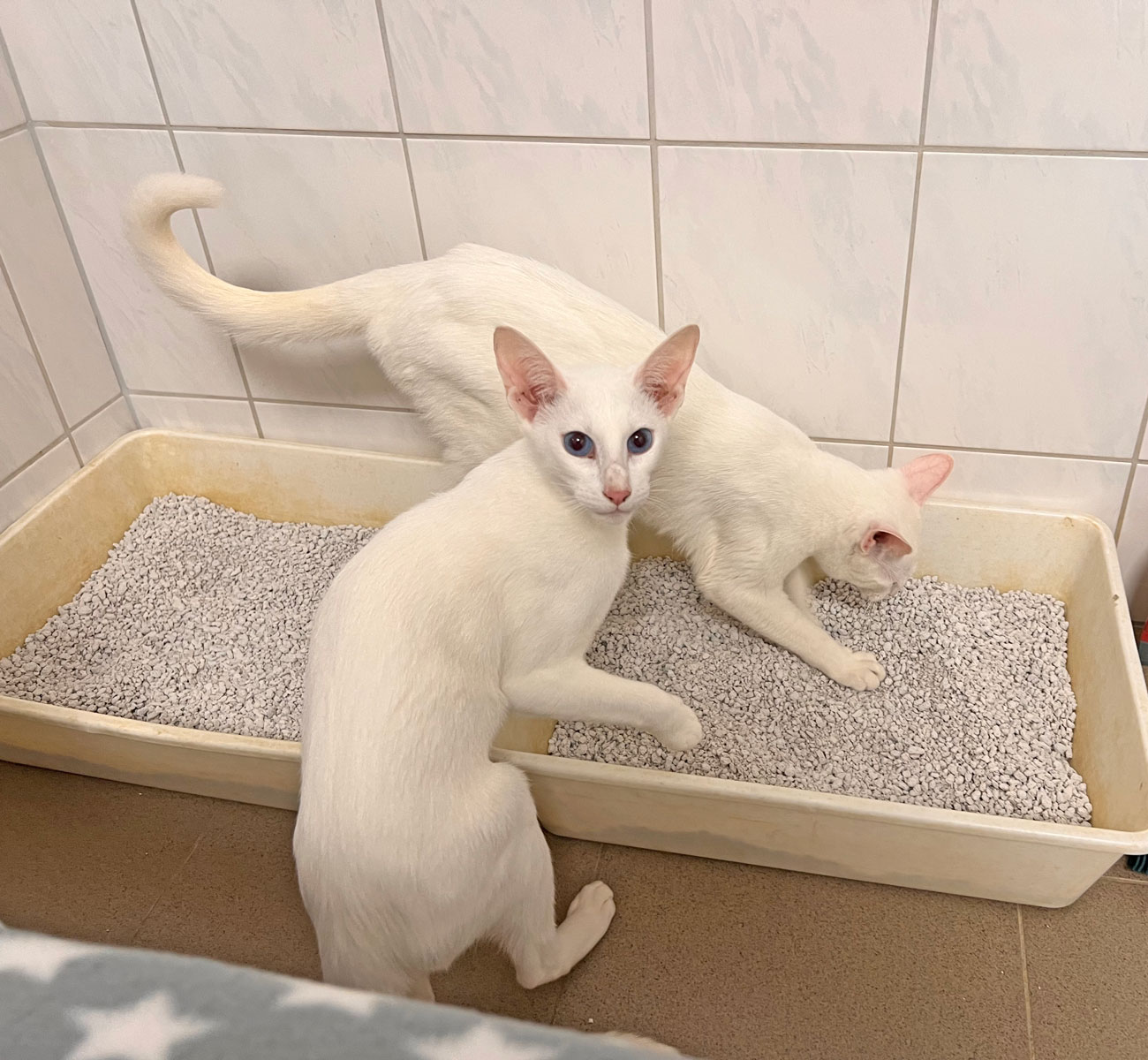 Natürlich benutzen Doby & Aziza wie selbstverständlich das Katzenklo.