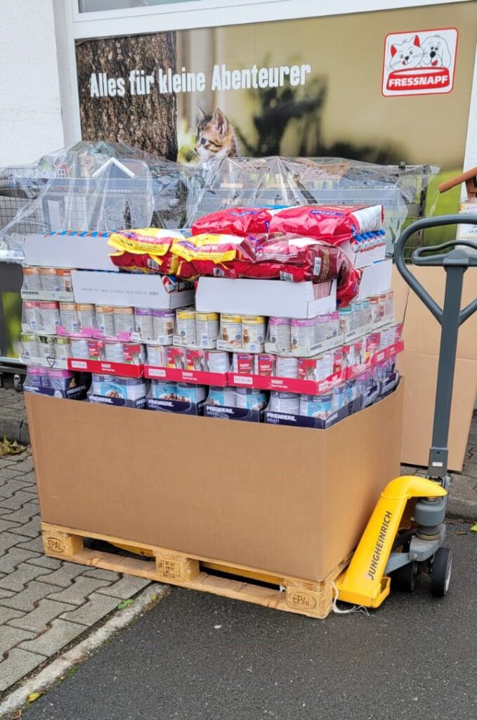 Am 11. Oktober 2025 war es dann wieder soweit. Ein Transporter wurde gemietet um damit alle Spenden, die gesammelt bzw. von gespendetem Geld bei FRESSNAPF eingekauft wurden, die weite Stecke von ca. 160 km in unser Tierheim zu bringen. Denn Isabell, Beate und Maria kommen nicht mal eben „von um die Ecke“. Nee, nee die Mädels kommen aus Hetzdorf, Kesselsdorf sowie Freital zu uns gefahren.