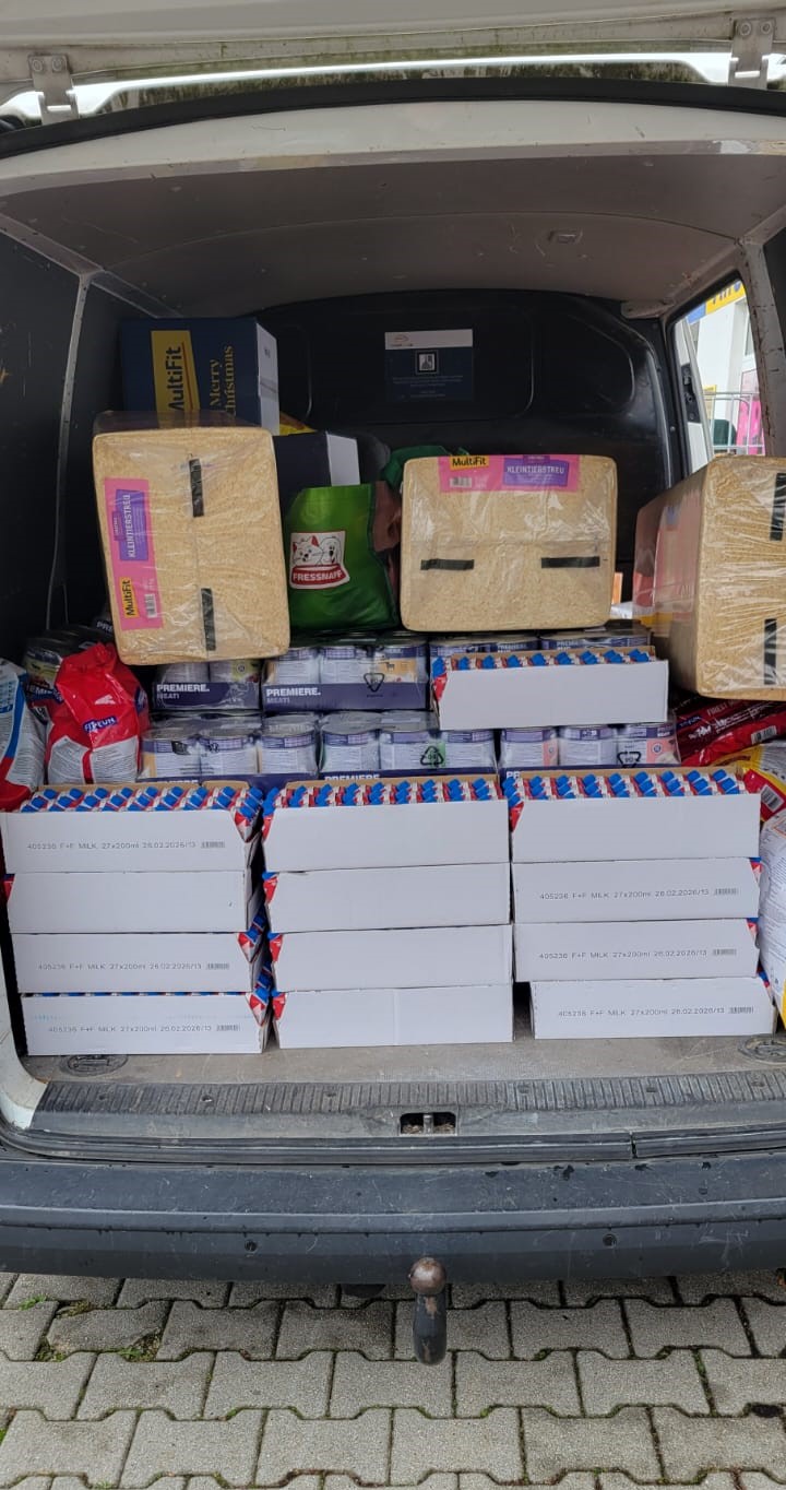 Am 11. Oktober 2025 war es dann wieder soweit. Ein Transporter wurde gemietet um damit alle Spenden, die gesammelt bzw. von gespendetem Geld bei FRESSNAPF eingekauft wurden, die weite Stecke von ca. 160 km in unser Tierheim zu bringen. Denn Isabell, Beate und Maria kommen nicht mal eben „von um die Ecke“. Nee, nee die Mädels kommen aus Hetzdorf, Kesselsdorf sowie Freital zu uns gefahren.