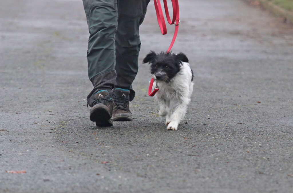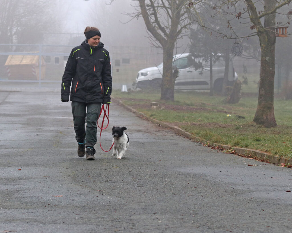 Draußen ist Hummel noch unsicher, am liebsten möchte sie immer hochgenommern werden. Wenn man ihr aber eine Weile geduldig das große „Draußen“ zeigt, dann beginnt sie zu schnüffeln und sich neugierig umzuschauen. Auch das Laufen an der Leine macht die kleine Zuckerpuppe schon sehr gut.
