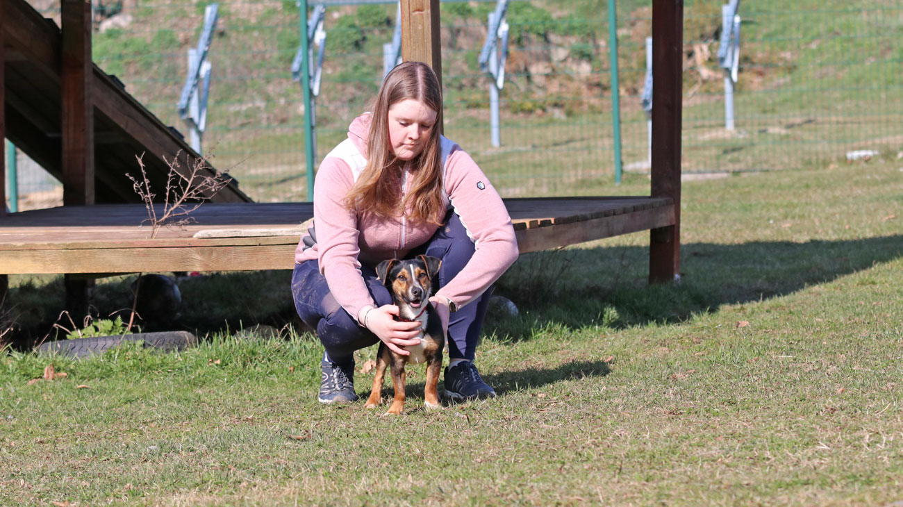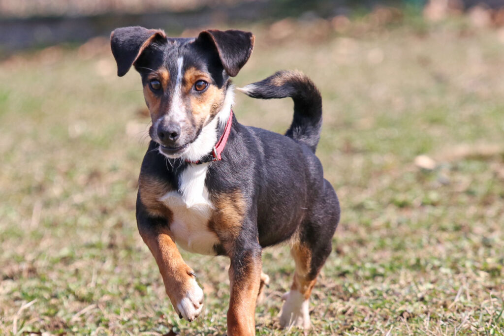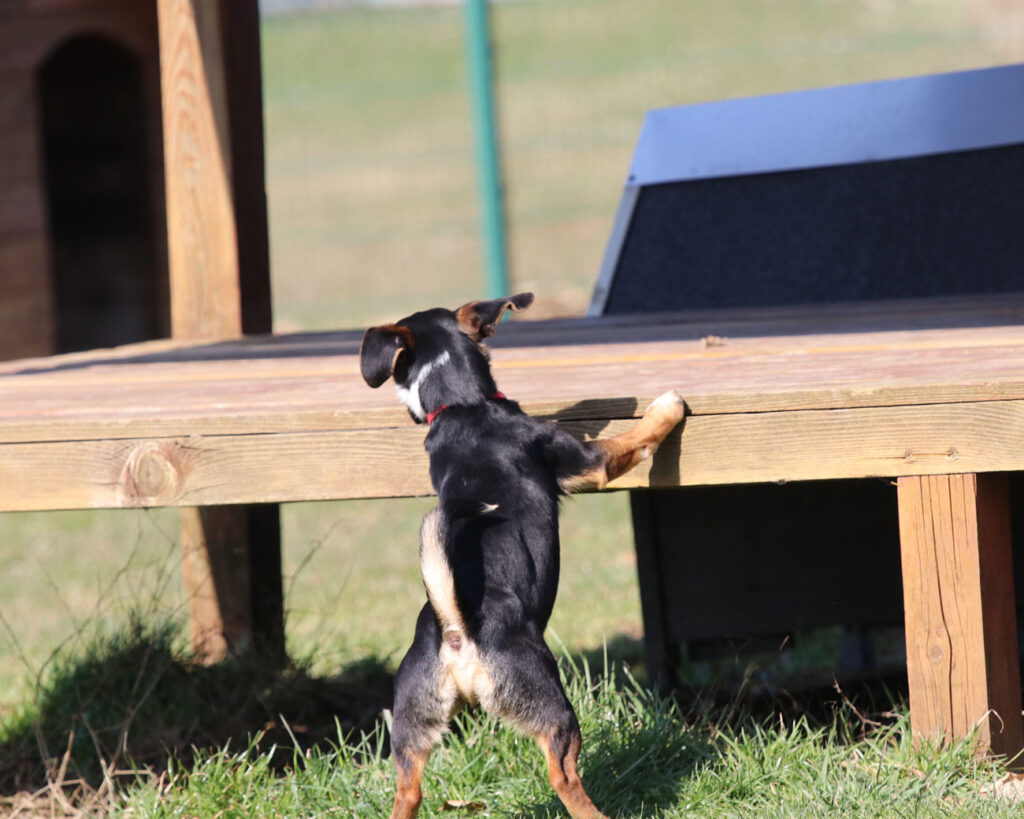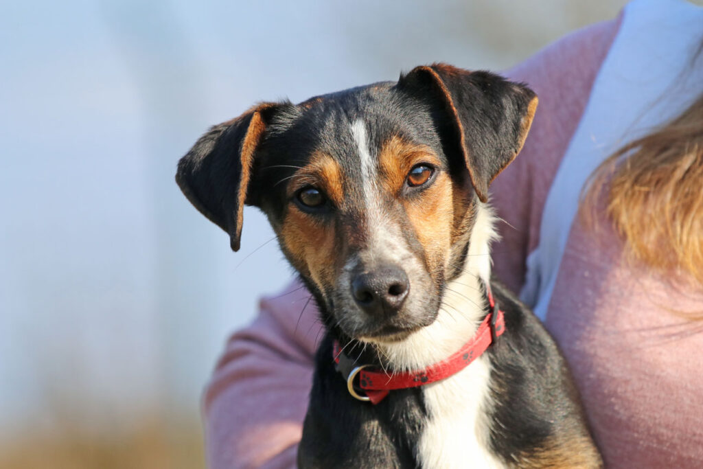 Lolka, vermutlich ein kleiner Terrier, ist furchtlos, agil, sehr anhänglich und menschenbezogen. Der kleine Kerl hat bisher nicht viel gelernt, ist aber sehr wissbegierig. Übung macht also hier den Meister 🙂 .