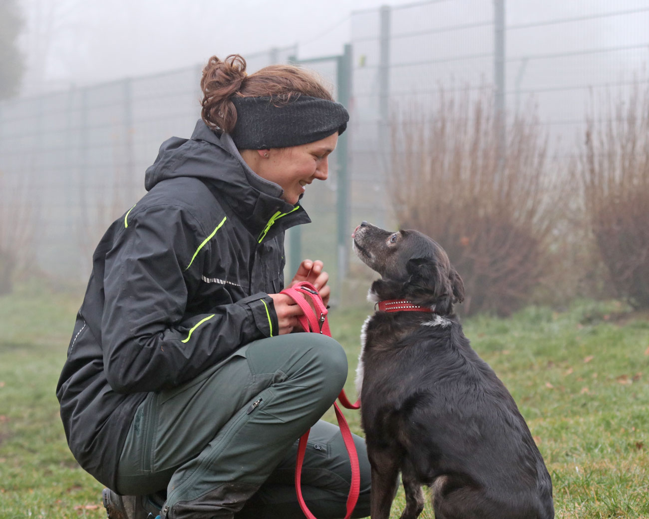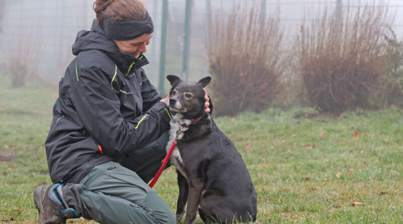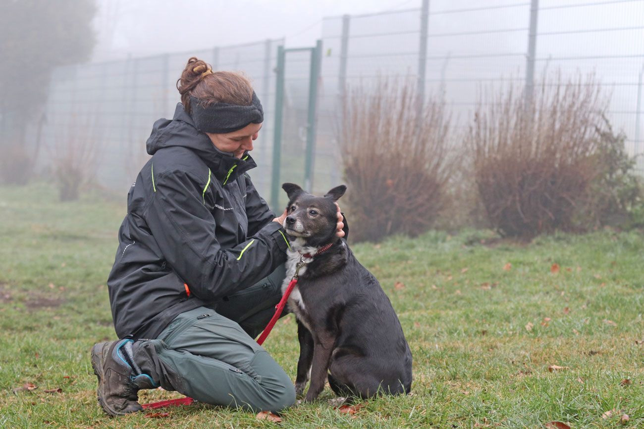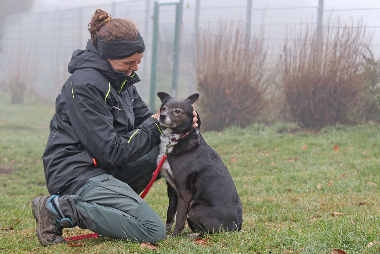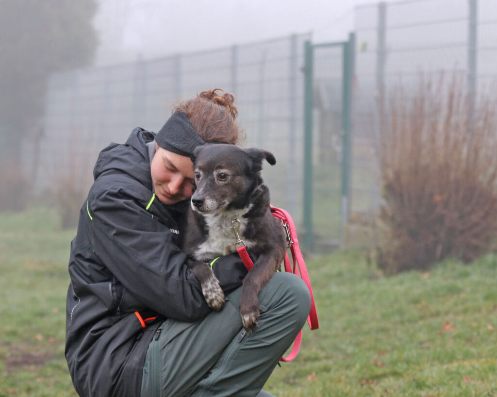 Die kleine Merle ist zutraulich, verschmust und sehr anhänglich. Immer wieder sucht sie die Nähe zum Menschen, selbst beim Laufen an der Leine, bleibt sie ganz nahe bei uns.