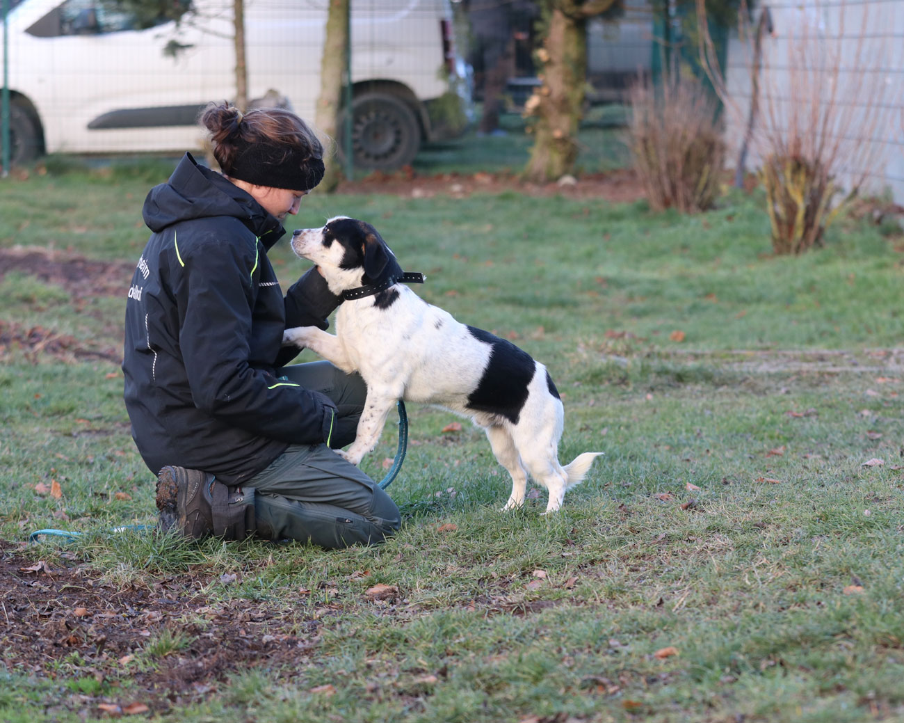 Nils ist mit seinen vierbeinigen Kumpels gut verträglich. Wenn Ihr Ersthund souverän und nicht zu aufdringlich ist, darf Nils gerne als Zweithund bei Ihnen einziehen. Katzen hat Nils bisher nicht kennengelernt, eine Zusammenführung von Hund & Katze sollte aber möglich sein. Das Laufen an der Leine wird fleißig geübt und klappt inzwischen schon recht gut.