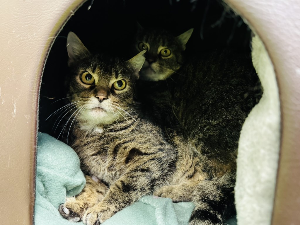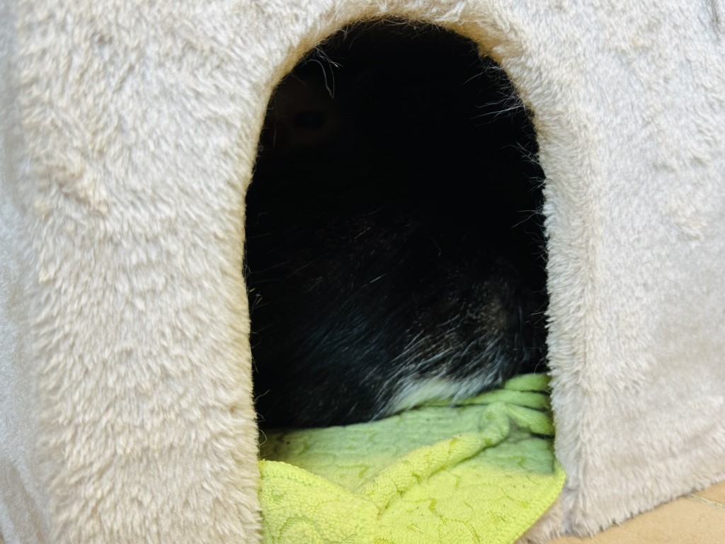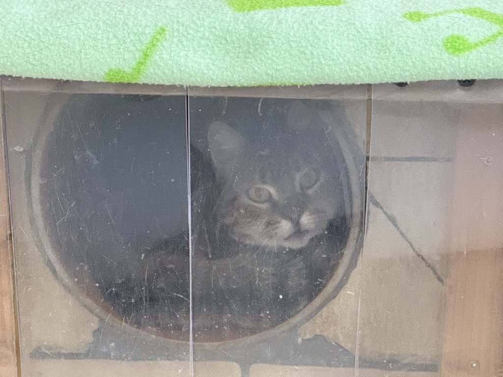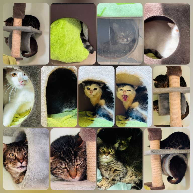 Nun sitzen die Katzen zusammengedrängt und ängstlich in unserem Katzenzimmer.