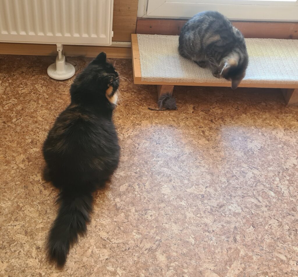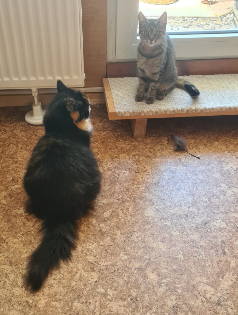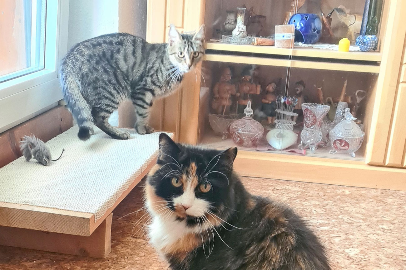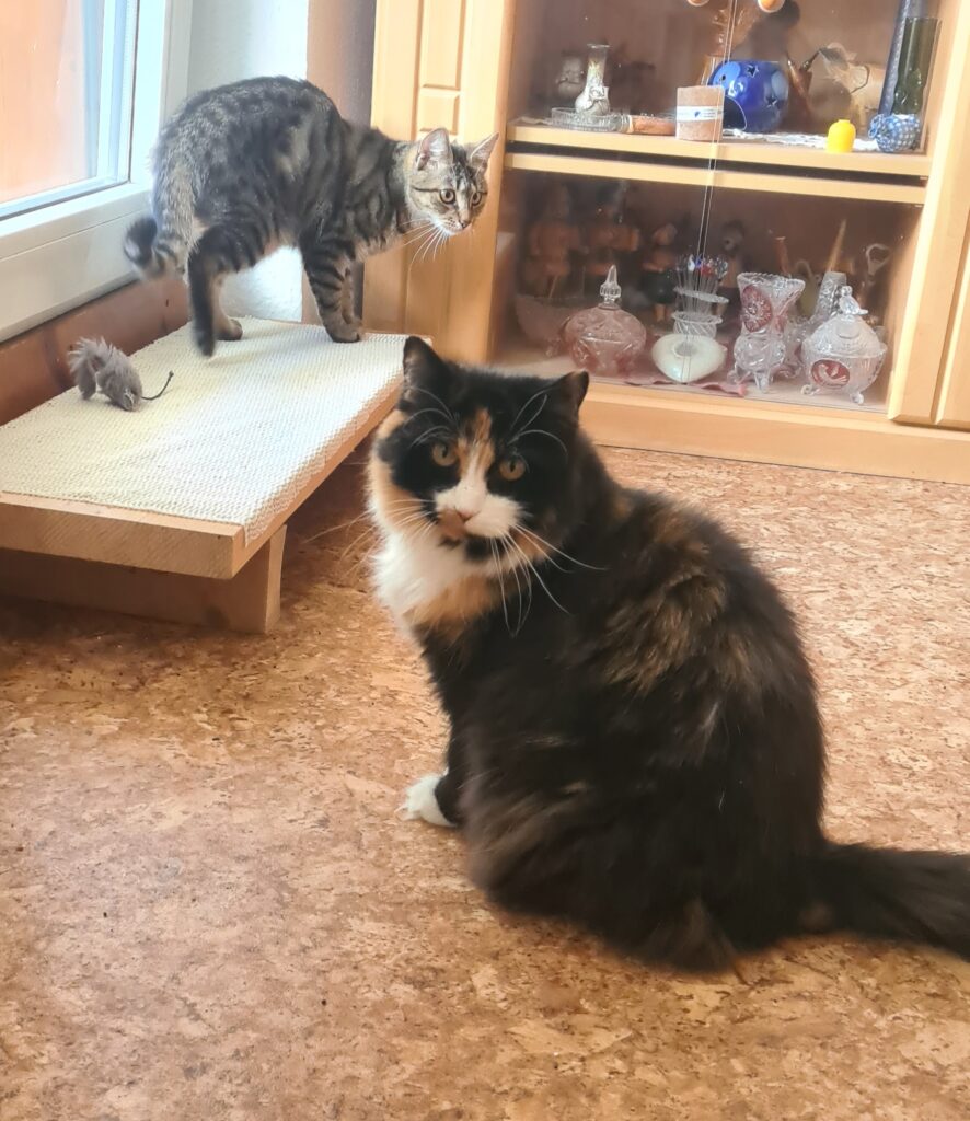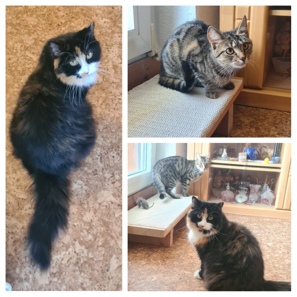 Beides sind Wohnungskatzen und an einen Balkon gewöhnt. Bei der Wahl des Katzenklos sind sie sehr eigensinnig und ein bisschen stur, denn jede „Diva“ möchte ihre Privatsphäre. Beide Stubentiger sind Volieren bzw. Vogelkäfige gewöhnt – daran stören sie sich nicht!