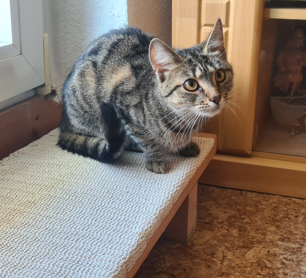 Petra ist ein 3 farbiger Perser-Mix mit einem Alter von 10 Jahren. Sie hat einen ruhigen, lieben, zurückhaltenden Charakter – macht gerne ihr eigenes Ding. Petra liebt es mit der kleinen grau-schwarz gescheckten Hauskatze Susi durch die Wohnung zu flitzen und zu spielen!
